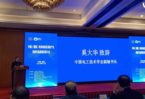 为进一步促进我国线缆及装备产业结构优化,转型升级与高质量发展,切实引入高端智力资源,有效提升产品质量,助力四川乃至全国线缆产业实现高质量发展,2018年11月14-15日,我会特邀国内线缆领域的权威专家,赴四川德阳举办了“中国(德阳)线缆及装备产业创新与高质量发展论坛”。我会副秘书长奚大华致开幕词,德阳市人民政府副秘书长刘诚分别致辞。
