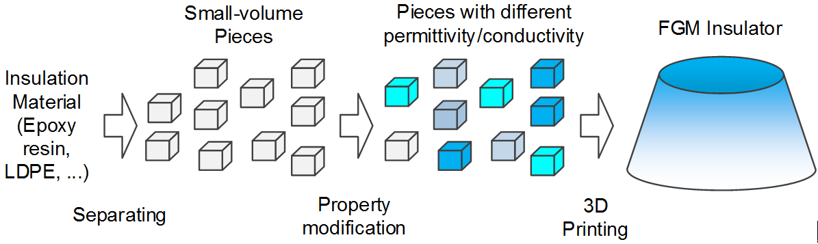 图11 3D打印技术制作介电梯度圆台绝缘子流程示意图