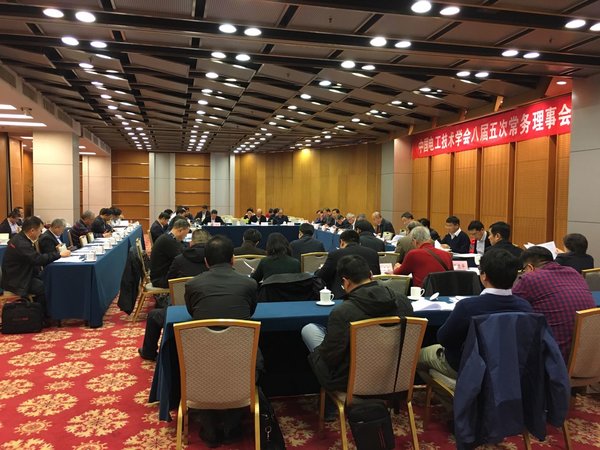 中国电工技术学会八届五次常务理事会议于3月29日在北京召开,50余名常务理事及代表参加会议。理事长杨庆新、副理事长张文亮、徐殿国、荣命哲、郝玉成、肖立业、梁曦东、管瑞良参加会议,特聘顾问孙昌基、王建华出席会议,学会代秘书长韩毅,副秘书长奚大华、王志华、丁立健、李永建及工作总部各部门负责人列席会议。会议由杨庆新理事长主持。