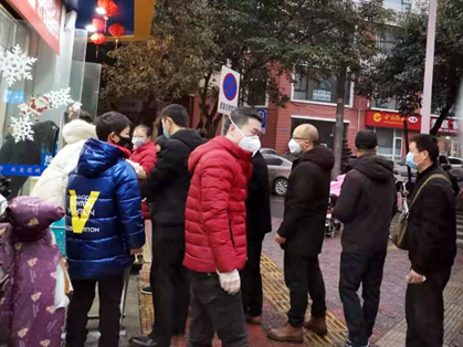 重型二分厂/焊接转子中心员工周晓斌得知爱人工作的药店有政府1块钱3个的平价口罩出售的消息,自愿到药店维持秩序。