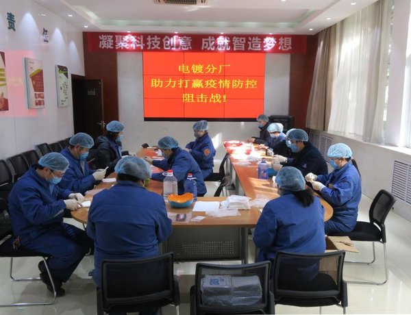 河南平高电气股份有限公司电镀分厂发挥专业优势,员工加班加点,心无旁骛地赶制符合要求的防疫材料,为公司各生产单位的全面复工复产提供必备战略防疫物资。