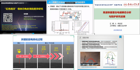 会议的第二阶段通过连线特邀嘉宾,就未来十年雷电防护科学与技术研究发展面临的机遇和挑战进行了主题访谈。特邀嘉宾从面向国家重大需求、行业政策趋势、未来研究热点等方面与青年学者进行了交流和指导。陈院士鼓励青年学者坚持基础研究,聚焦先进的放电机理的诊断方法和装置研发,争取原创突破。陈家宏教高通过回顾雷电防护研究的历程,建议青年学者应面向电气化交通、新能源等新领域雷电预警和防护的迫切需求开展攻关。丁立健院长分析了气象领域和电工领域研究雷电防护的特色和优势,分享了合肥工业大学在飞行器雷电防护研究方面的进展情况,建议未来雷电防护应关注国防重点领域的相关需求。何俊佳教授认为雷电防护研究具有长期性和艰巨性,勉励从事本领域的青年学者要脚踏实地、坚持不懈,并树立多学科融合研究的思路,重点发展放电机理的观测新手段。殷禹所长分享了近年来电力系统雷电防护进展的情况,指出目前在发展智慧能源互联网背景下配电网一、二次设备融合对于雷电防护提出了新的挑战。曾嵘教授从科研选题的角度,认为未来雷电防护研究一方面应聚焦放电微观机理,坚持攻关,同时在宏观角度应面向重点解决行业的重大需求,发展新的雷电预警和防护技术。会议的最后,陈家宏教高对研讨会进行了总结发言,号召倡议更多的青年学子投身雷电防护的基础研究。