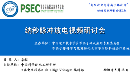 2020年5月13日下午14:00-17:30,由中国电工技术学会等离子体及应用专委会和等离子体科学和能源转化北京市国际科技合作基地联合主办的中国电工技术学会等离子体及应用专委会“高压放电与等离子体应用”系列视频研讨会第7期成功召开,会议主题为“纳秒脉冲放电”。本次会议召集人为中国科学院电工研究所章程副研究员,会议采用了“腾讯会议”进行线上学术交流,并通过“bilibili”进行了同步直播,得到了来自国内外多所高校和研究院所150余名专家和科研工作者的大力支持。