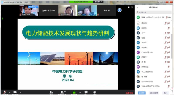 电力储能是保证电网安全高效运行、提高电网新能源消纳能力、扩展电能利用领域的重要技术,也是提高电能利用率和利用效率、促进电力市场发展、增强用户用电自主性和经济性的有效手段,在构建先进能源互联网中具有重要地位。为更好地服务我国储能产业科技发展,中国电工技术学会特邀中国电力科学研究院首席技术专家惠东教授级高工,于2020年4月24日举办“电力储能技术发展现状与趋势研判”培训+咨询活动,为大家详细讲授有关电力储能应用的最新发展动态。本次培训由浙江正泰电器股份有限公司承办,来自多个省市电网公司、电气设备生产企业以及正泰集团等单位的40余位参会代表参加,我会咨询部主任高巍博士主持本次活动。
