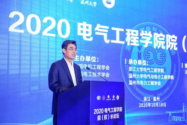 10月18日,由中国电工技术学会、中国电机工程学会主办,浙江大学电气工程学院、温州大学电气与电子工程学院、温州市电力工程学会共同承办,正泰集团股份有限公司协办的“2020年电气工程学院院(校)长论坛”在浙江温州召开。中国电工技术学会理事长、天津理工大学校长杨庆新,中国电机工程学会理事长、国际电工委员会主席、中国工程院院士舒印彪,浙江大学副校长王立忠,温州大学副校长钱强,全国政协常委、全国工商联副主席、正泰集团董事长南存辉出席会议并致辞。来自全国67所高校电气工程学科的200余位院(校)长、教授、学者以及电气领域企事业专家参会。
