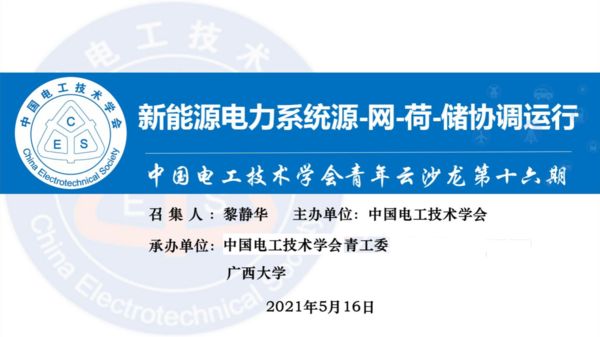 中国电工技术学会第十六期青年云沙龙于2021年5月16日晚通过腾讯会议线上报告与讨论、微信群互动、哔哩哔哩视频直播相结合的形式召开,取得了圆满成功。