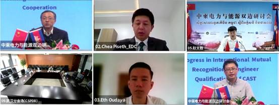 会议报告环节由中国电工技术学会副秘书长闫卓和学术部主任孙于主持。会议通过7个高质量报告,全面展示了澜湄六国水资源合作进展、中柬合作现状及未来展望;柬埔寨电力发展及中柬友谊框架下的合作提升;“双碳”背景下中资企业参与柬埔寨能源、电力市场的前景与挑战;以水电为主的电网安全稳定运行以及不同能源电厂配置方案;水面光伏电站的开发、设计、建设过程中的技术要点和实践经验分享;柬埔寨理工学院电力与能源工程领域专业人才培养;中国科协推进工程师资格国际互认工作成效以及下一步工作安排。