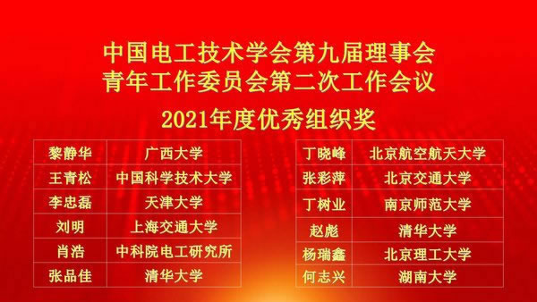 中国电工技术学会第九届理事会青年工作委员会第二次工作会于2022年3月5日以线上会议方式成功召开,来自高校及企业、科研院所的173名代表参加了会议。中国电工技术学会秘书长韩毅,中国电工技术学会副秘书长、青工委主任丁立健教授分别致辞。会议由中国电工技术学会学术部主任,青工委秘书长孙于主持。