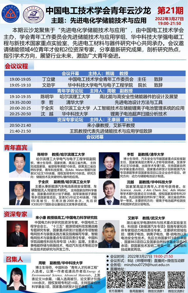 2022年03月27日下午19:00-21:30,与您相聚中国电工技术学会B站直播间和微信互动群。