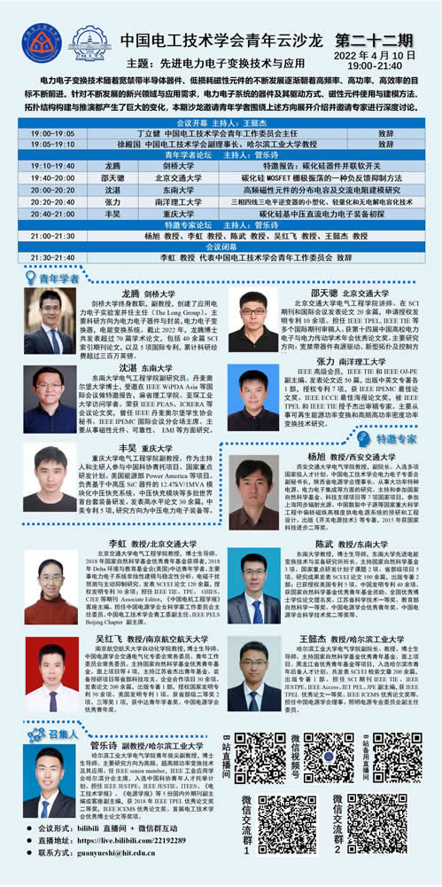 2022年4月10日晚19:00-21:40,与您相聚中国电工技术学会B站直播间和微信互动群。