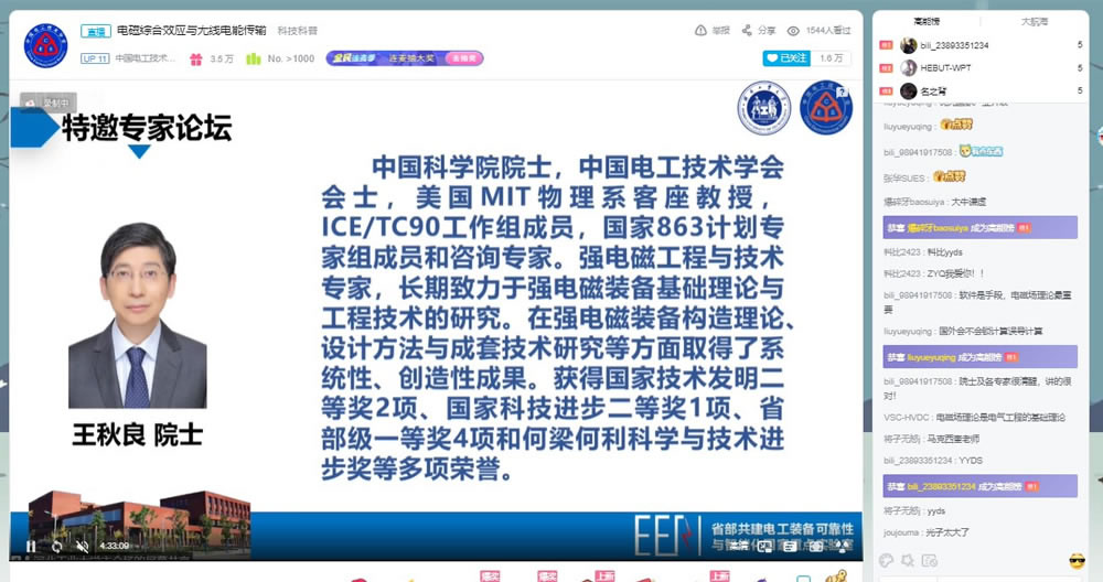 本次会议受到了电磁领域高校教师、研究生和企业人员的广泛关注,大家积极在会议微信群和B站直播留言,对各位专家的报告和发言进行交流和提问,为各位学者和科研工作者带来了更多的思考和感悟,为新时代电磁综合效应与无线电能传输的快速发展提供了新的思路。
