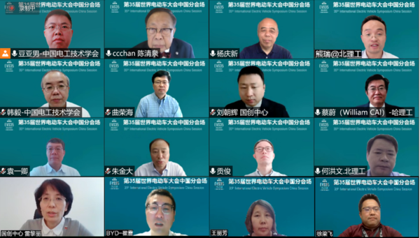 6月14日,第35届世界电动车大会中国分会场(EVS35 China Session)在线成功召开。本次分会场由世界电动车协会(WEVA)、欧洲电动车协会(AVERE)和中国电工技术学会(CES)共同主办,国家新能源汽车技术创新中心、比亚迪汽车工业有限公司以及电动车辆国家工程研究中心协办。中国电工技术学会理事长、大会主席杨庆新教授,中国工程院院士、大会主席、香港大学陈清泉教授,世界电动车协会、欧洲电动汽车协会、挪威电动车协会主席Espen Hauge先生分别在开幕式上致辞。共有843位来自电动汽车相关技术领域的代表注册参会,线上会议直播系统浏览量达6870人次。开幕式由大会组织委员会主席、中国电工技术学会韩毅秘书长主持。