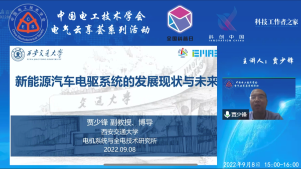 贾少锋博士作题为《新能源汽车电驱系统的发展现状与未来》的科普报告