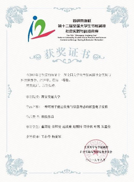 全国大学生节能减排社会实践与科技竞赛获奖证书