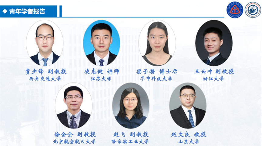会议特邀西安交通大学贾少锋、江苏大学凌志健、华中科技大学梁子漪、浙江大学王云冲、北京航空航天大学徐金全、哈尔滨工业大学赵飞、山东大学赵文良等7位青年专家学者,围绕航空航天、国防军工等重要领域开展新型特种电机的前沿技术报告。贾少锋老师从国家战略需求角度出发,指出电机转矩持续输出能力的重要性,提出了定子及转子均配备绕组和永磁体的新型矩阵式多磁源调制游标电机。凌志健老师针对航空航天等领域高可靠、高推力密度作动装置的迫切需求,开展了磁力丝杠作动器的研究,从电机工作机理、拓扑结构、集成建模、磁路等效、动态性能、实验验证等六个方面进行了详细介绍。梁子漪老师提出了集成绕组式无刷双机电端口电机,分析了集成绕组的通用构造方法,其结合电子电子器件的控制,可较好取代常规双绕组结构,显著提升电机效率。王云冲老师介绍了轴向复合式永磁辅助同步磁阻电机,实现了磁障和永磁体解耦,同时可以利用磁场偏移技术使得永磁转矩和磁阻转矩的最大转矩点电流角相同,进一步提升电机转矩。徐金全老师开展了多电/全电飞机高可靠电力作动器——高性能永磁容错电机的研究,提出同轴两段式容错电机新构型、基于热约束的容错控制方法、无传感器控制等,实现开路及短路故障下安全运行。赵飞老师针对工业直驱领域高功率密度高负载电机需求,开展轴向磁场调制电机的研究,涵盖电机电磁结构设计及优化、振动噪声分析及抑制、加工及制造等。赵文良老师围绕高性能永磁电机转矩提升技术进行汇报,针对凸极永磁电机永磁转矩和磁阻转矩未充分利用的问题,开展非对称永磁电机设计及优化。