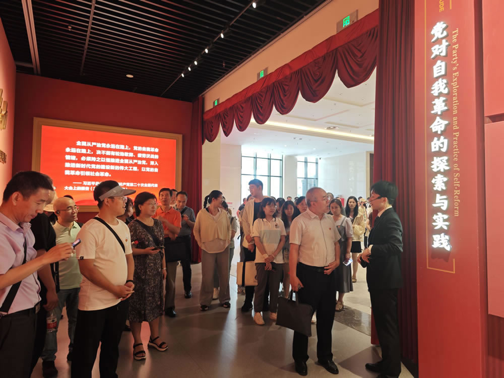 在“永葆青春活力—香山时期中国共产党自我革命实践专题展览”专题展厅,在讲解员的引导下,同志们参观了序篇“党对自我革命的探索与实践”和“立好规矩、进京‘赶考’”“从严治党、香山答卷”“凝聚民心、汇聚力量”三部分,全面了解中国共产党香山时期管党治党的历史实践,展现了中国共产党始终坚持以党的伟大自我革命引领伟大社会革命的历史自觉,引领全体党员领导干部不断强化理论武装,切实从思想上正本清源、固本培元、凝聚力量。
