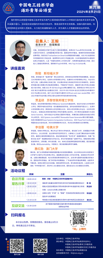 8月24日20:00开讲!中国电工技术学会海外青年云讲堂【第六期】