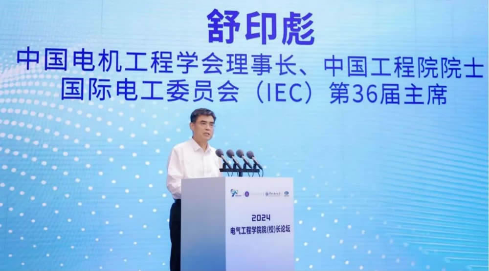 舒印彪理事长在致辞中强调了电气专业教育对我国电力事业发展的关键贡献,指出构建新型电力系统是电气专业面临的时代命题和系统工程,强调了电气专业需聚焦电力电量平衡、安全稳定控制、数字技术应用、标准体系构建和产业链供应链安全等关键技术问题。他表示,电气工程学院院(校)长论坛是电气工程领域极具影响力的交流平台,今年正值中国电机工程学会成立90周年,经过90年的发展,电气工程学院与学会之间的联系合作与支撑越来越紧密,双方要站在电力科技进步的最前列,勇闯科技创新“无人区”,进一步增强使命感和责任感,共同推进重大技术创新,为建设世界科技强国、教育强国做出更大贡献。