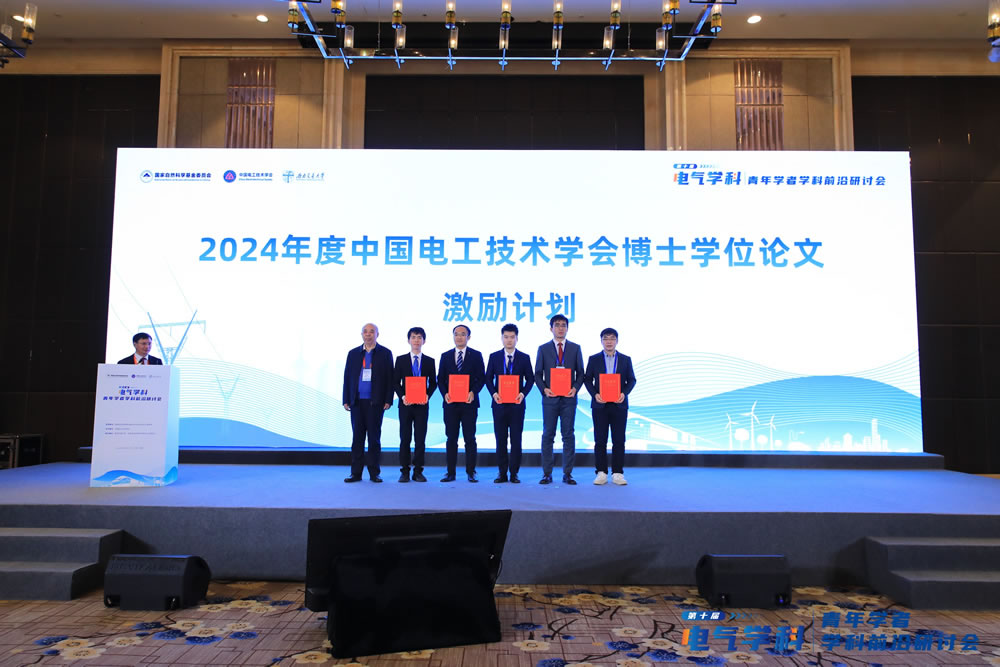 杨庆新理事长、徐殿国副理事长、韩毅秘书长分别为获得2024年中国电工技术学会博士学位论文激励计划的5位青年学者和获得提名的5位青年学者颁奖。