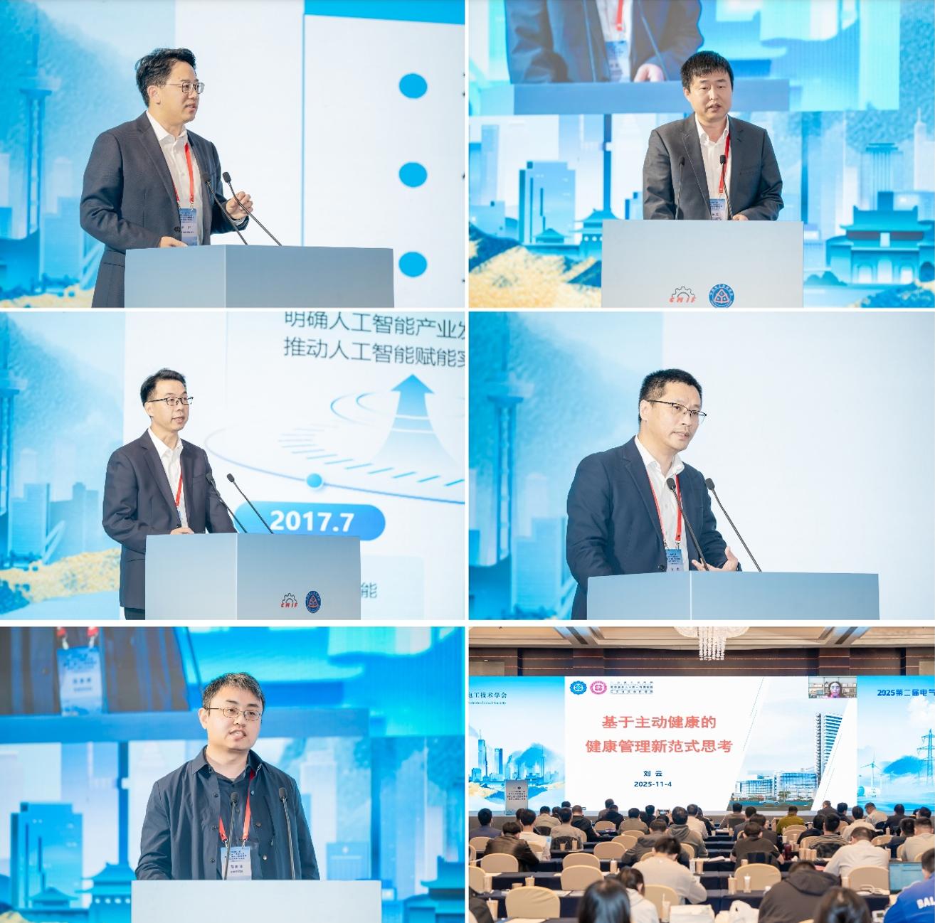 大会报告环节特邀南京大学副校长郑海荣、南京邮电大学副校长刘青山、中国电力科学研究院人工智能所副所长戴赛、清华大学王宾、江苏省人民医院院长刘云、南京南瑞继保电气有限公司党委书记严伟、中国电气装备集团科学技术研究院有限公司副总经理郭井宽、国电南自研究院副院长丁泉、浙江大学长聘研究员张欣、百度研究院商业智能实验室负责人周景博分别作题为《医学影像与生物智能》《具身视觉智能:三维感知与情感交互》《电力人工智能关键技术与应用展望》《机理分析与人工智能相结合的配电网故障诊断技术探讨》《基于主动健康的健康管理新范式思考》《电力装备制造企业AI应用思考与布局》《输配电装备领域的人工智能技术探索与应用实践》《电力人工智能典型场景实践探索与发展思考》《电力电子智能化的“关键一跳”:AI赋能垂直领域的实战与陷阱》《面向时空智能的基础模型构建-初探与展望》的主旨报告。东北电力大学穆钢、国网信通产业集团李炳森、清华大学杨耕、上海交通大学蔡旭分别主持大会报告环节。