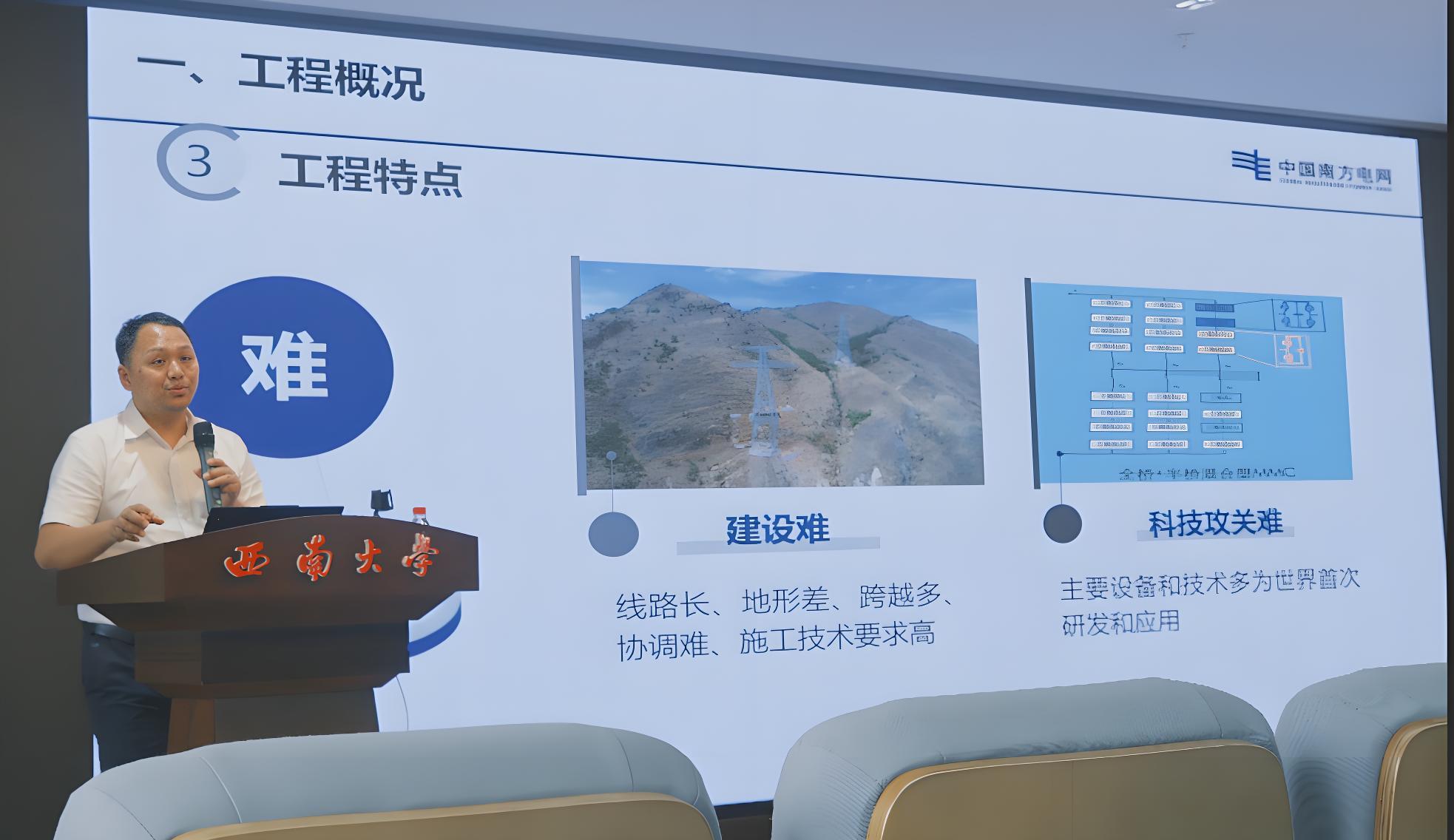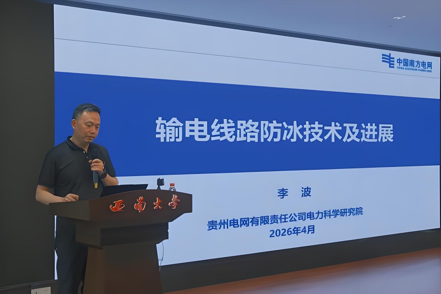 2026年4月16日,由中国电工技术学会与科普中国主办、西南大学承办的“电气青年说”校园科普报告会,在西南大学工科大楼A座511报告厅成功举行。本次活动由西南大学工程技术学院唐超教授担任召集人,邀请了南方电网超高压输电公司电科院正高级工程师邓军、贵州电网有限责任公司电力科学研究院正高级工程师李波、南方电网超高压输电公司贵阳局正高级工程师吕刚和西南大学工程技术学院胡剑副教授作专题报告与现场交流。