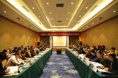 中国电工技术学会2017年度秘书长工作会议于4月8日在北京召开。来自专业委员会、省市学会的主任委员、秘书长及代表共60余人参加会议。学会副理事长兼秘书长裴相精,副秘书长韩毅、奚大华、王志华、李永建出席会议,工作总部有关部门负责同志参加会议。会议由韩毅副秘书长主持。