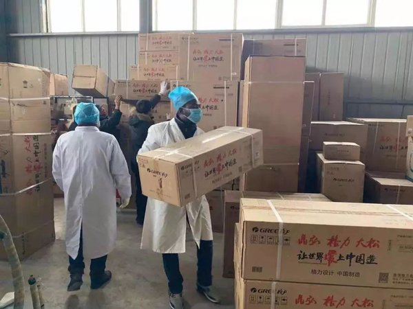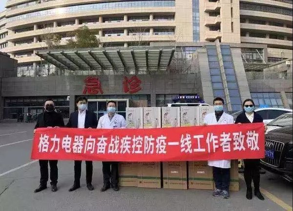 1月24日晚,除夕夜,为保障武汉同济医院发热内科的医务人员能有良好的工作环境,湖北格力紧急调派一批技术服务工程师,半夜抢装格力空调。面对湖北多地疫情一线对产品安装、服务的需求,湖北格力迅速作出安排,送货安装,为疫情攻坚战贡献自己的力量。1月27日凌晨3时,湖北格力的工作人员连夜将大批电暖器等捐赠物资,陆续送到武大中南医院、空降兵医院、武警总院、市第二医院、市第六医院、市第九医院、市中心医院、武汉东湖医院、武汉亚心医院等数十家医院,为一线医护人员带去温暖。1月28日,湖北格力捐赠的第二批电暖器已陆续送达武汉市儿童医院、市第四医院、市第三医院光谷院区发热门诊,解决部分病房和值班医护人员取暖问题。