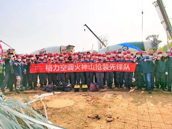 1月27日,格力向武汉火神山医院捐赠的包括风无界新风空调在内的空调物资全部到达施工现场,格力抢装先锋队集结完毕,全天候在现场待命。1月31日,根据施工进度,格力空调抢装“先锋队”,开始抢抓院区空调安装调试,争分夺秒助力火神山医院尽快交付投用。格力同步向雷神山医院捐赠的空调物资也已全部运达现场,并已完成样板间的安装调试。根据武汉雷神山医院整体施工进度,格力时刻待命启动捐赠空调的全面安装。