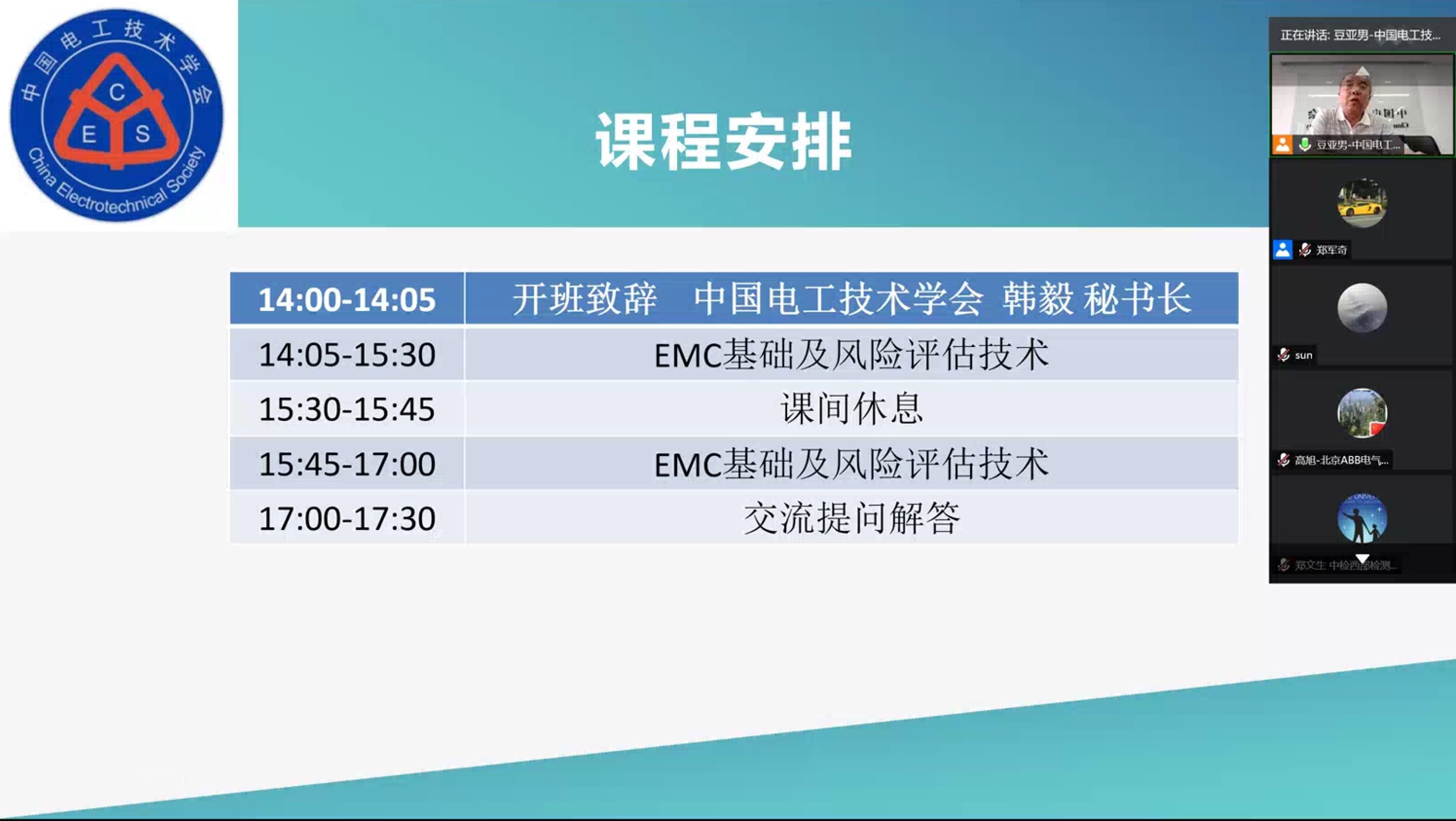 开班仪式由中国电工技术学会韩毅秘书长致辞。
