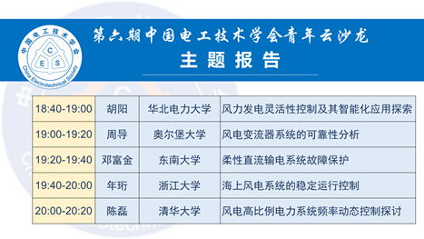 特邀报告环节共邀请了5位来自国内外的青年学者分享海上风电领域的最新研究成果。华北电力大学胡阳副教授介绍了风力发电灵活性控制以及风电智能化应用等两方面的内容,指出灵活性控制是支撑并网风电调峰、调频的核心能力,对海上风电的发展意义重大,同时也指出了大数据和人工智能对风电智能化的重要推动作用。丹麦奥尔堡大学周导老师的报告则专注于风电变流器的可靠性研究,主要从功率器件应力评估、变流器级可靠性分析和提高系统可靠性的方法三个层面做了研究。东南大学邓富金教授围绕海上风电柔性直流输电系统中的模块化多电平换流器,从换流器器件故障、交流电网故障和直流电网故障等三个方面介绍了相关的故障诊断、容错和保护问题的相关研究。浙江大学年珩教授围绕海上风电系统的稳定运行控制,详细介绍了海上风电和模块化多电平换流器送端换流站系统的阻抗建模、稳定性分析和震荡抑制方法。清华大学陈磊副教授带我们探讨了风电高比例电力系统频率动态控制方法,指出了高比例风电并网给电力系统带来了巨大挑战,介绍了在这种条件下风电如何参与电力系统的调频调功,并分享了他的见解和体会。