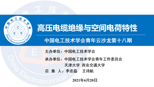 本期青年云沙龙聚焦“高压电缆绝缘与空间电荷特性”,由中国电工技术学会主办,中国电工技术学会青年工作委员会、天津大学和西安交通大学共同承办。中国电工技术学会副秘书长、合肥工业大学电气与自动化工程学院院长丁立健教授,天津大学杜伯学教授,西安交通大学李盛涛教授致欢迎辞。学会青工委主任黄兴溢教授主持开闭幕式。本期活动由召集人天津大学李忠磊副教授和西安交通大学王诗航助理教授共同主持。