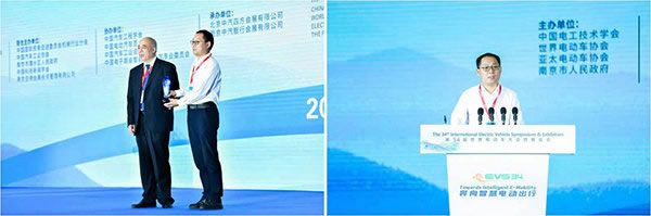 在E-visionary颁奖环节,电驱动运输协会(EDTA)主席Genevieve Cullen,欧洲电动车协会(AVERE)主席Espen Hauge,EVS34大会主席、中国电工技术学会理事长、天津理工大学校长杨庆新,分别公布并颁发了北美地区、欧洲地区和亚太地区的优秀电动汽车城市奖:美国纳什维尔、挪威韦斯特兰和中国南京,南京市溧水区领导翟晓黎上台领奖并发表获奖感言。随后,欧洲电动车协会(AVERE)主席Espen Hauge宣布了EVS35大会的举办城市是挪威奥斯陆,与会代表收看了EVS35组委会精心制作的热情洋溢的宣传片。