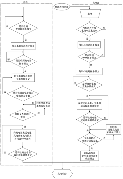 充电过程控制包括:物理连接,建立通信连接,参数配置,充电准备就绪,充电以及完成充电,具体时序流程图如下所示:
