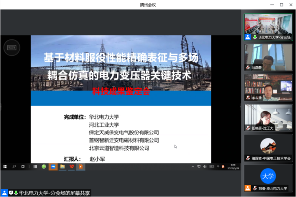 2022年5月28日,我会组织中国工程院院士、中国南方电网有限责任公司首席科学家饶宏院士及6名来自产业界和学术界的权威专家,对华北电力大学、保定天威保变电气股份有限公司、河北工业大学、首钢智新迁安电磁材料有限公司和北京云道智造科技有限公司5家单位联合完成的“变压器服役特性与多场仿真关键技术”项目,组织召开了国家级科技成果鉴定会。华北电力大学副校长律方成,保变电气副总工程师赵峰、杜振斌,高级顾问程志光等领导专家全程参加本次鉴定会。鉴定会由我会咨询部主任刘淼主持。