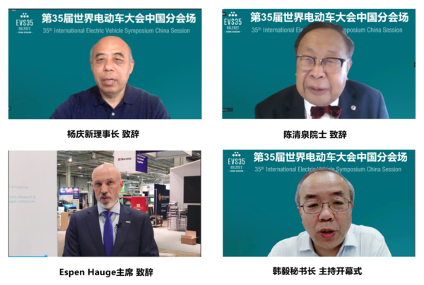 6月14日,第35届世界电动车大会中国分会场(EVS35 China Session)在线成功召开。本次分会场由世界电动车协会(WEVA)、欧洲电动车协会(AVERE)和中国电工技术学会(CES)共同主办,国家新能源汽车技术创新中心、比亚迪汽车工业有限公司以及电动车辆国家工程研究中心协办。中国电工技术学会理事长、大会主席杨庆新教授,中国工程院院士、大会主席、香港大学陈清泉教授,世界电动车协会、欧洲电动汽车协会、挪威电动车协会主席Espen Hauge先生分别在开幕式上致辞。共有843位来自电动汽车相关技术领域的代表注册参会,线上会议直播系统浏览量达6870人次。开幕式由大会组织委员会主席、中国电工技术学会韩毅秘书长主持。