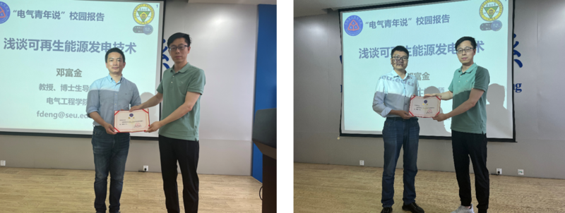 为激发青年学生的学习和科研热情,引导青年学生热爱电工学科、未来投身电气行业,中国电工技术学会于2023年5月30日在江苏南京航空航天大学自动化学院组织开展了“电气青年说”校园科普报告会活动。活动邀请了东南大学青年首席教授、国家青年特聘专家邓富金老师和东南大学副教授、电力电子系副主任谭林林老师做分享交流。