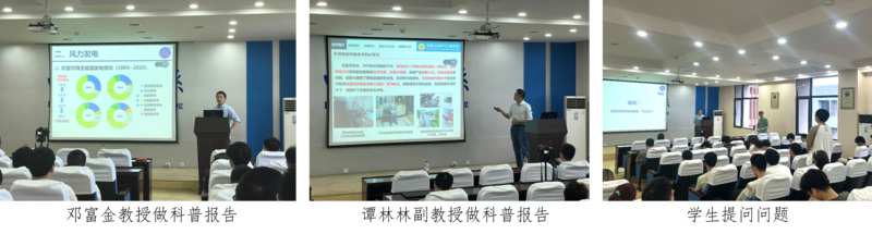 科普报告会上,邓富金教授以“浅谈可再生能源发电技术”为题,主要讲述了能源、风力发电、技术前景三块内容。邓教授从“传统能源有哪些”“传统能源有什么特点”“哪些是新能源”等问题入手,引出了可再生能源发电技术,并介绍了无线充电、全电飞机、基于高比例新能源发电的电力系统等新能源发电技术的前景。谭林林副教授就“无线电能传输技术及动态”展开分享,介绍了无线电能传输技术发展历史、工作原理、关键技术等,分析了电动汽车无线充电应用现状与趋势,并介绍了东南大学无线电能传输技术课题组的研究成果。