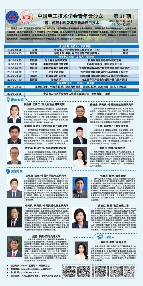 2023年09月24日下午19:00-22:05,与您相聚中国电工技术学会B站直播间和微信互动群。