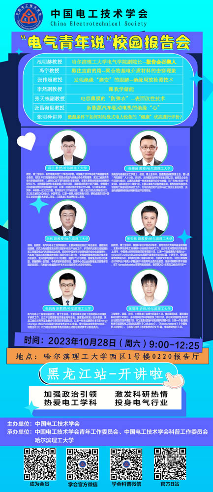 “电气青年说”校园科普报告会黑龙江站哈尔滨理工大学专场定于2023年10月28日举办,精彩内容,敬请期待。