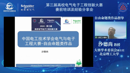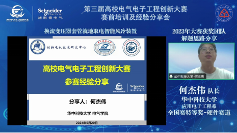 5月20日,中国电工技术学会以线上和直播形式举办了第三届高校电气电子工程创新大赛赛前培训及经验分享会。中国电工技术学会副秘书长王志华,施耐德电气(中国)有限公司研发总监徐康,华北电力大学教务处处长、大赛学术委员会主任刘崇茹,北京理工大学长聘教授、大赛学术委员会副主任沙德尚,北京交通大学电气工程学院创新创业导师、大赛组织委员会秘书霍静怡,固纬电力电子教育事业部高级顾问、河南理工大学教授艾永乐,施耐德电气(中国)有限公司的赛题负责人,第二届部分获奖学生代表,以及近3000名学生参加会议。大赛指导委员会副主席、大赛组织委员会主任和敬涵教授主持了会议。