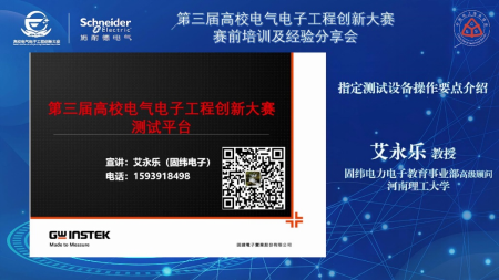 艾永乐教授介绍了第三届高校电气电子工程创新大赛指定测试平台PTS和PEK。