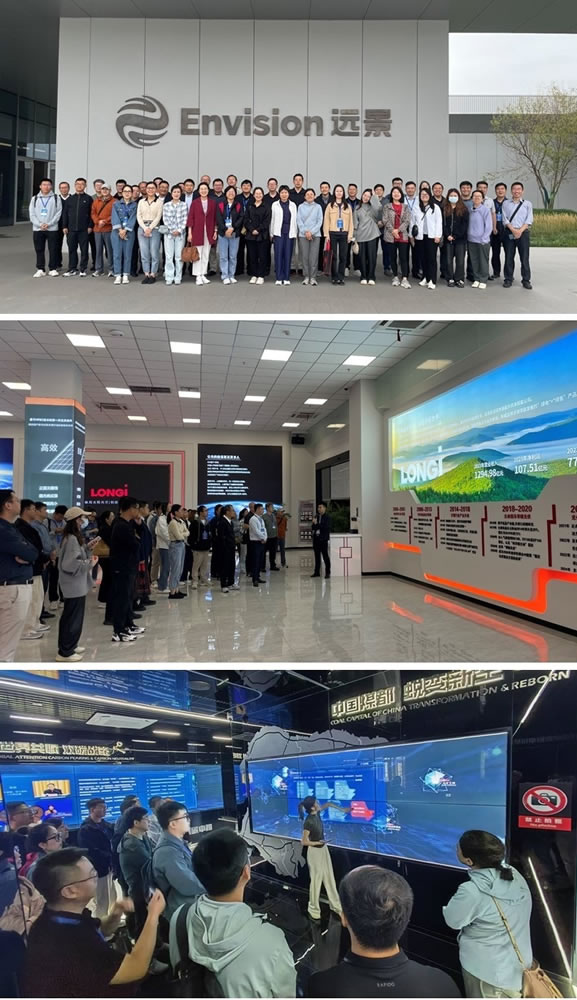 会议安排参会代表赴鄂尔多斯零碳产业园及鄂尔多斯碳中和研究院参观学习。鄂尔多斯零碳产业园是鄂尔多斯市政府携手远景科技集团首创并落地的全球首座零碳产业园。参会代表参观了远景科技集团的园区科技展厅,听取了关于园区整体产业布局和发展战略介绍;参观了高性能动力电池的智能化制造工厂,了解了生产全流程;参观了隆基绿能光伏产业园区,听取了公司产业发展和技术创新成果介绍,了解了光伏产业前沿发展动态。在碳中和研究院,参会代表认真学习了我国“双碳”发展战略,深入了解了鄂尔多斯发展绿色、低碳产业的战略规划、行动路线和科研成果,了解到作为内蒙古自治区首家碳中和研究院所发挥的开拓创新作用。