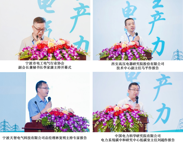 大会开幕式由宁波市电工电气行业协会副会长兼秘书长李家康主持,专家报告由我会咨询部主任刘淼、宁波天智电气科技有限公司总经理林复明主持。清华大学电机系教授、电磁检测与设备性能安全评估研究中心主任、中国电工技术学会电磁检测技术及装备专业委员会主任委员黄松岭,中国电力科学研究院有限公司电工新材料研究所所长韩钰,保定天威保变电气股份有限公司副总工程师赵峰,西安高压电器研究院股份有限公司技术中心副主任马平,中国电气装备集团研究院综合能源技术研发处副处长丁希晖,北京交通大学教授、智能交通绿色低碳技术教育部工程中心副主任张彩萍,中国电力科学研究院有限公司电力系统碳中和研究中心低碳室主任刘超,上海交通大学副教授王晗,利驰软件(苏州)有限公司首席行业专家陈泰9位专家聚焦我国输配电装备高质量发展,分别以《电磁无损检测技术在新型电力系统及装备中的应用》《高端输配电材料发展与应用》《电力变压器节能设计技术》《环保高压开关设备技术发展及碳足迹评价》《面向输配电领域的多元异质储能技术研究》《电化学储能电站安全高效一体化运行关键技术》《电力装备全生命周期产品碳足迹评价初探及实践》《车-桩-站-网智能互动发展现状及关键技术》《数字工厂利驰解决方案》为题,从多个角度交流分享了现阶段输配电产业发展的重点问题和前沿技术方向,助力我国输配电产业实现高速、高端、高质量发展。