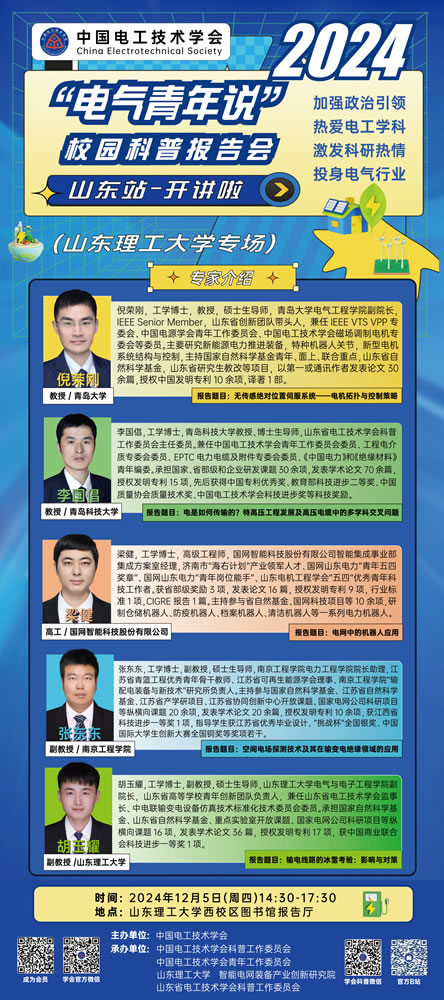 2024年12月5日,与您相聚山东理工大学。欢迎电气工程领域广大院校师生、科研技术人员以及关心关注电气技术发展的各界人士积极参加!