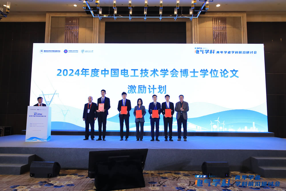 杨庆新理事长、徐殿国副理事长、韩毅秘书长分别为获得2024年中国电工技术学会博士学位论文激励计划的5位青年学者和获得提名的5位青年学者颁奖。