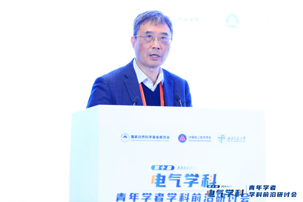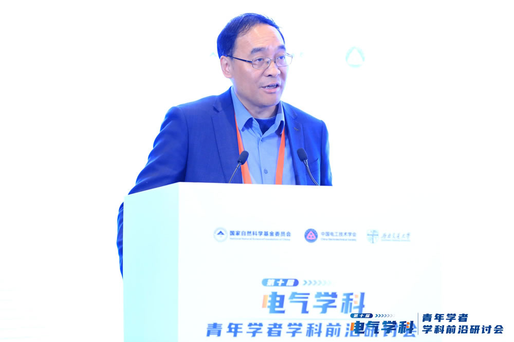 罗安院士作题为《多梯多维度培养创新型大国工匠教育方法与实践》的报告,介绍了面向强国战略和重大工程迫切需要的创新型人才教育方法、实践、成效与推广;孙宏斌校长作题为《极地新型电力系统的挑战与机遇》的报告,介绍了以清洁能源为主体的极地新型电力系统技术的现实需求和研究进展;郑雁军主任作题为《电气科学与工程学科人才类项目资助情况与学科发展》的报告,介绍了电气学科青年基金的基本情况。西安交通大学刘定新教授、南京航空航天大学王凯教授、北京理工大学熊瑞教授、西南交通大学高国强教授分别作题为《等离子体活化介质技术及其生物医学应用》《航空航天永磁伺服电机系统》《动力电池系统管理与控制研究进展》和《高速铁路弓网滑动电接触受流关键技术》的报告。