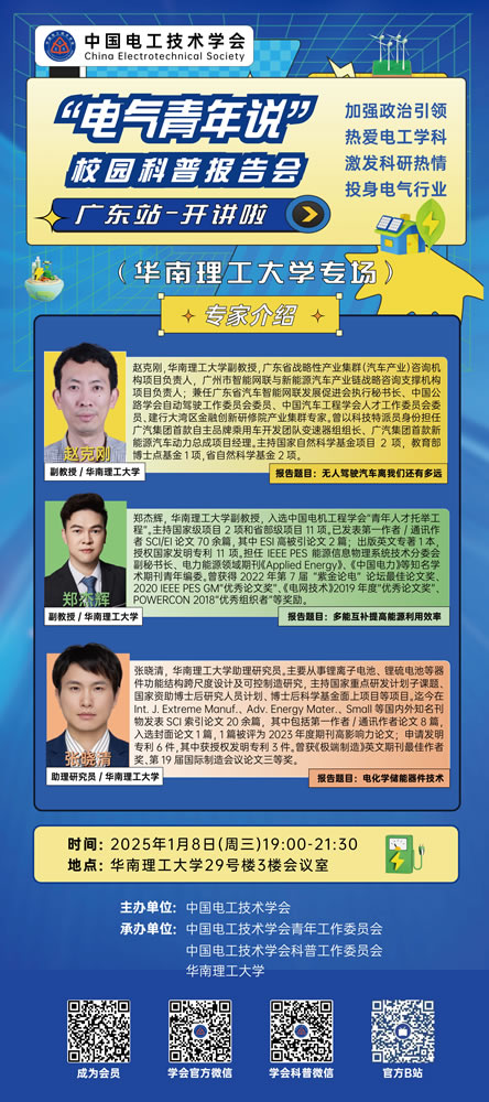 2025年1月8日,与您相聚华南理工大学。欢迎电气工程领域广大院校师生、科研技术人员以及关心关注电气技术发展的各界人士积极参加!