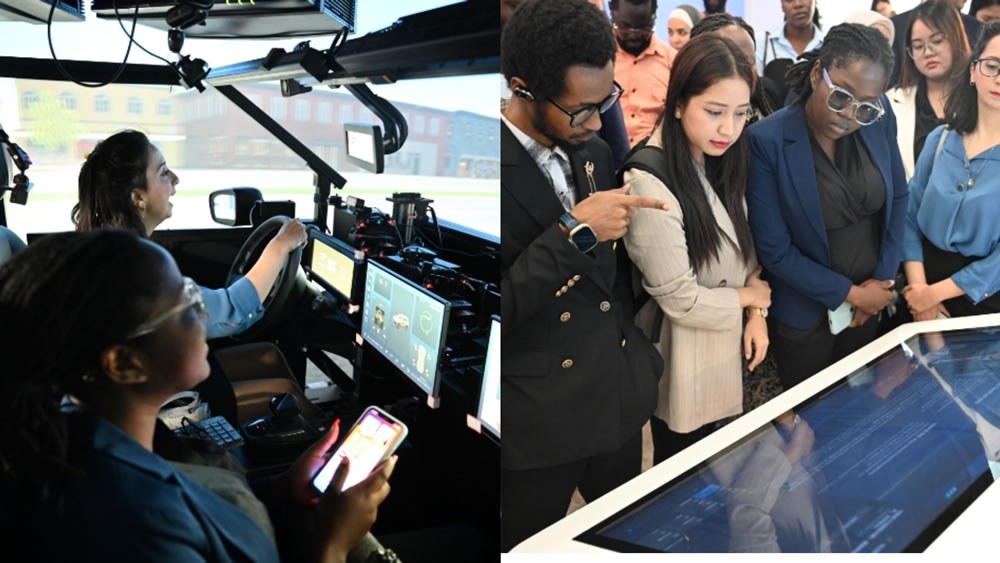 师生参观了国创中心的整车能效开发试验室、环境模拟试验室、汽车数字化体验实验室、车规级芯片测试认证中心。国创中心人力资源部韦婉女士通过生动详细的讲解,让来自不同国家、专业背景的留学生深入了解我国在新能源汽车领域的突出成果及最新技术进展,切身感受到科技创新对城市可持续发展的推动作用。