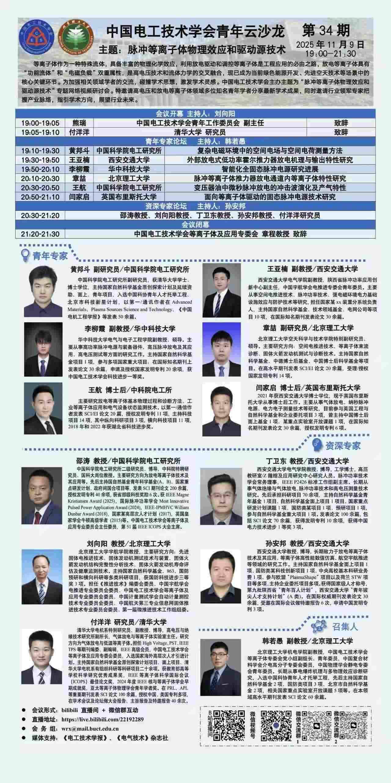2025年11月09日晚19:00-21:45,与您相聚中国电工技术学会B站直播间和微信互动群。