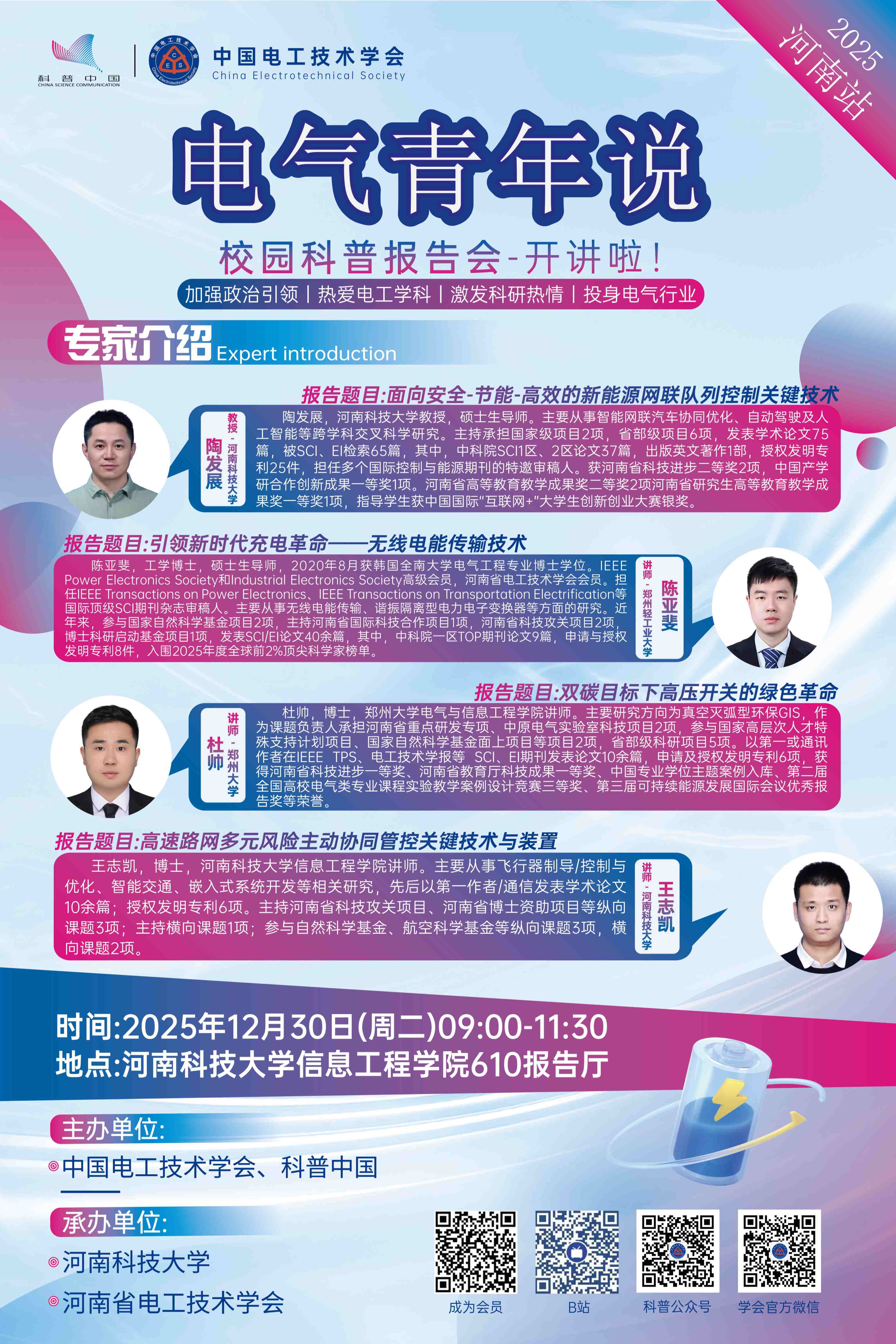 2025年12月30日,与您相聚河南科技大学。欢迎电气工程相关专业的师生、科研技术人员以及所有关注电气技术发展的社会各界人士踊跃参与!